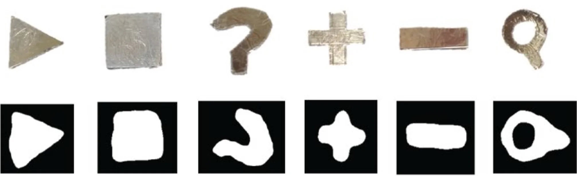 Thermal tag designs in visual spectrum footage (top) and thermal imagery (bottom)
